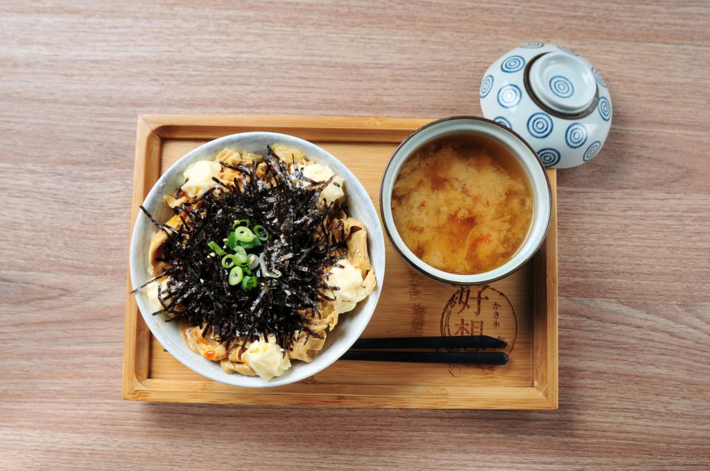 京都常民料理的簡素樸實,新鮮湯葉(生豆皮)、豆腐、少許金針菇鮮香菇,一起烹得柔滑濃稠,澆淋於熱騰騰的白飯上。味道淡泊清香,卻是越吃越有滋味。跳脫京都傳統制法,以三州三河味醂 (本味醂) 特製獨家的湯汁與湯葉的結合,創造出更符合台灣朋友的口味。
